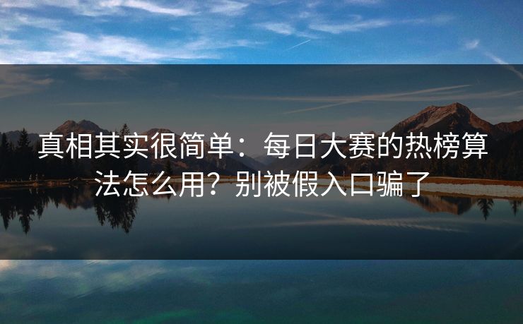 真相其实很简单:每日大赛的热榜算法怎么用?别被假入口骗了